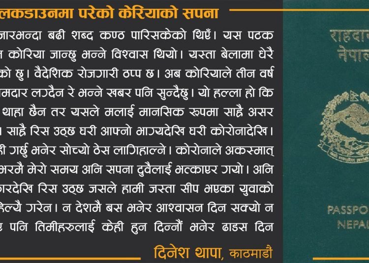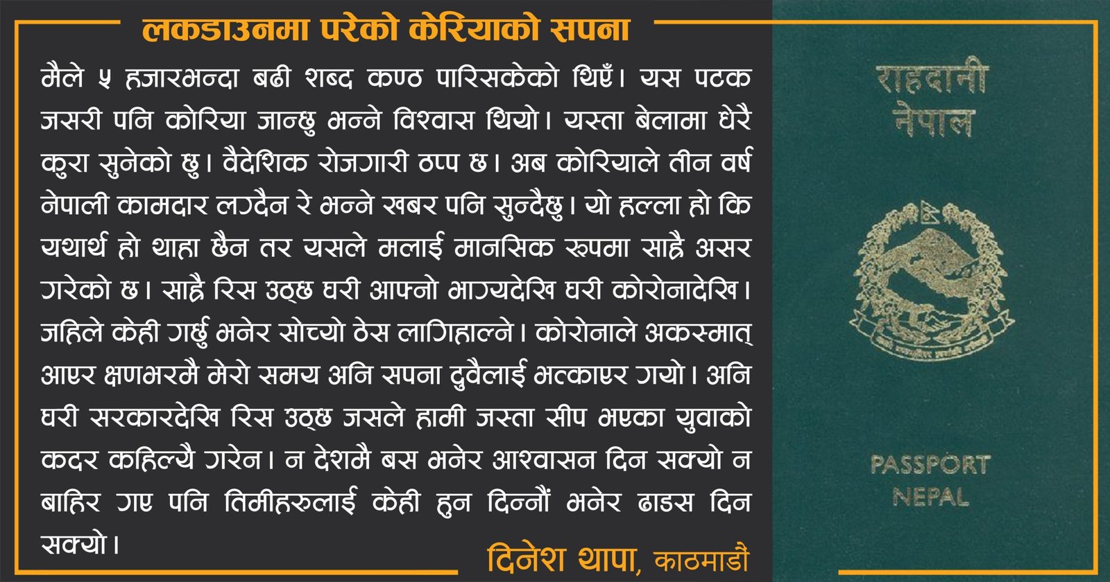 म २ वर्षदेखि विदेश जाने विचार गर्दै थिएँ। अरू साथीहरु जसरी मलाई पनि युरोप, अमेरिका, अस्ट्रेलिया जान मन त थियो तर मलाई लाग्यो ती देशमा विद्यार्थी भिसामा गए पनि पढ्ने भन्दा नि पैसा कमाउने विचार हुन्छ अधिकांशको। विदेशमा राम्रो र सामान्य जीवनयापन गर्न अहिले १२-१५ लाख खर्च गरेर जाने साथीहरुले ऋण तिर्नै दुईवर्ष लागेको कुरा सुनाउँदा मलाई त्यति धेरै पैसा तिरेर ठूला देश जान मन लागेन।