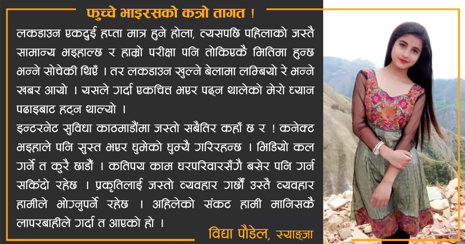 घरको आर्थिक अवस्था त्यति राम्रो नभएकाले पैसा कमाउनुपर्ने बाध्यता छ। पैसा कमाउने, सुखमय जिन्दगी बिताउने रहर कसलाई नहोला र। तर कहिलेकाहीँ मलाई पैसा कमाउने भोक अरूलाई भन्दा ज्यादै छ कि जस्तो लाग्छ। त्यसैले पनि मैले आफ्नै व्यवसाय गर्ने योजना बनाएको थिएँ। तर सोचेको जस्तो नहुने। धेरैले मैले गर्न खोजेको कुरामा त्यति चासो देखाएनन्।