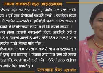 टोखा रोडमा हाम्रो किराना पसल छ। मेरो पत्नी कोपिलाले पसल चलाउँछिन्। म चाहिँ घरजग्गा किनबेच गर्छु। हाम्रो सानो र सुखी ...